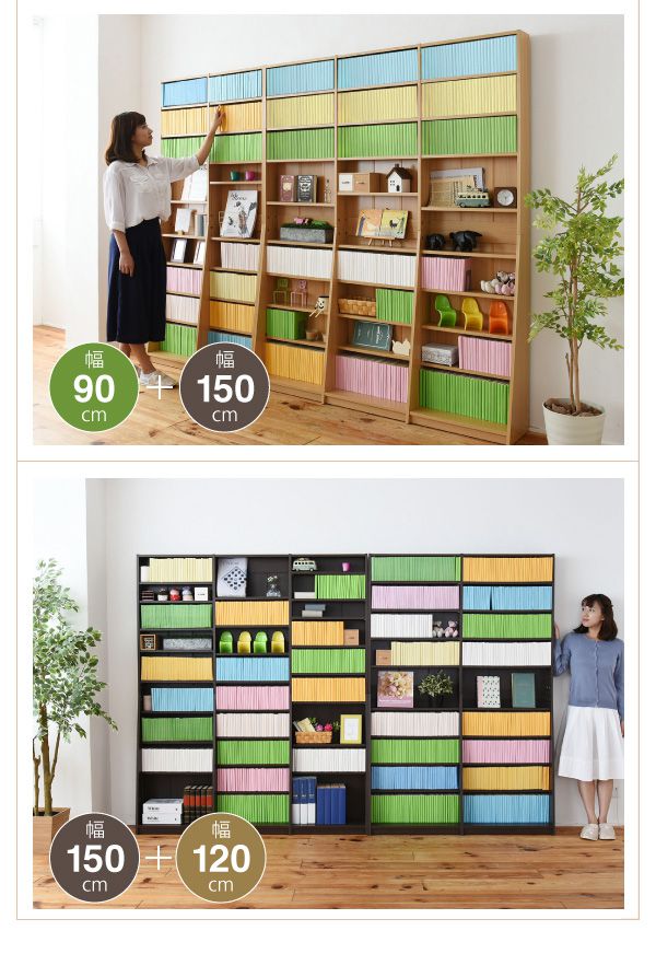 1cmピッチ 文庫本収納ラック 幅150 薄型 ワイド ブックシェルフ 高さ 180 木製 大容量 書斎収納 700冊以上【送料無料】
