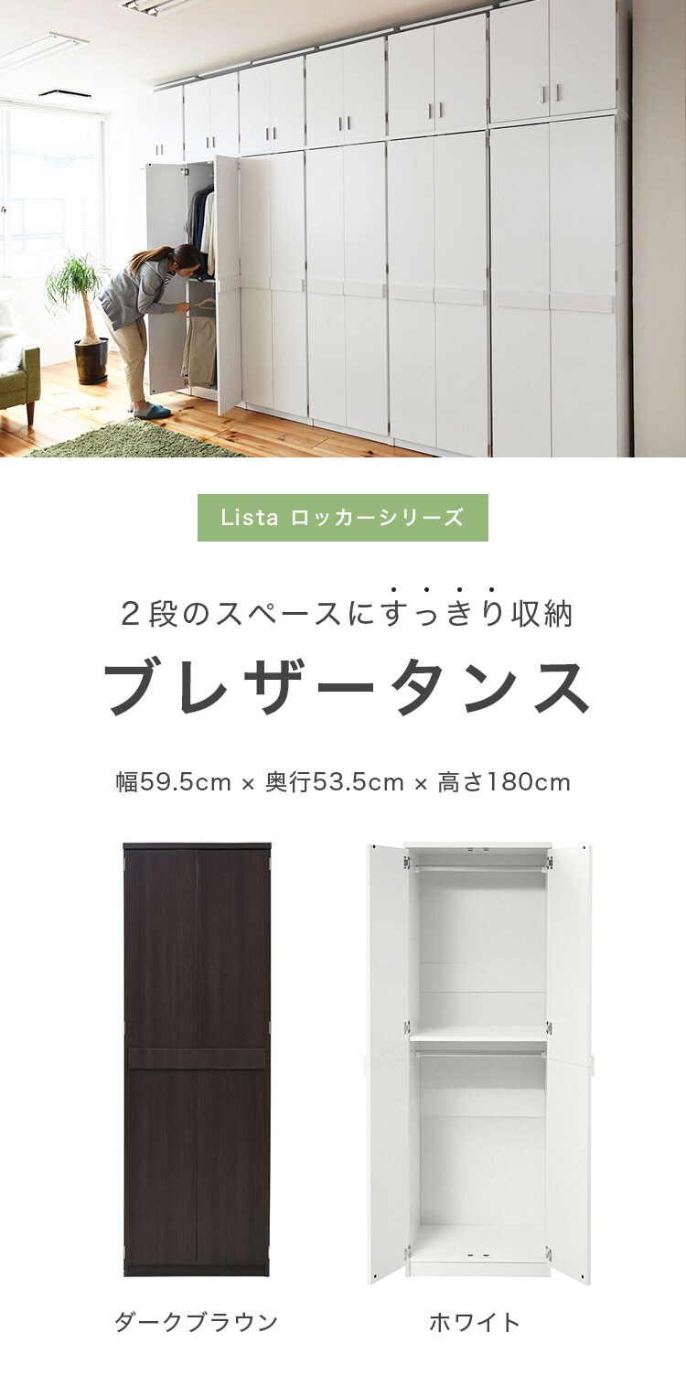 ロッカー シリーズ ブレザータンス 幅 60 高さ 180 2段 ロッカータンス 収納 クローゼット 衣替え 木製ロッカー ホワイト【送料無料】