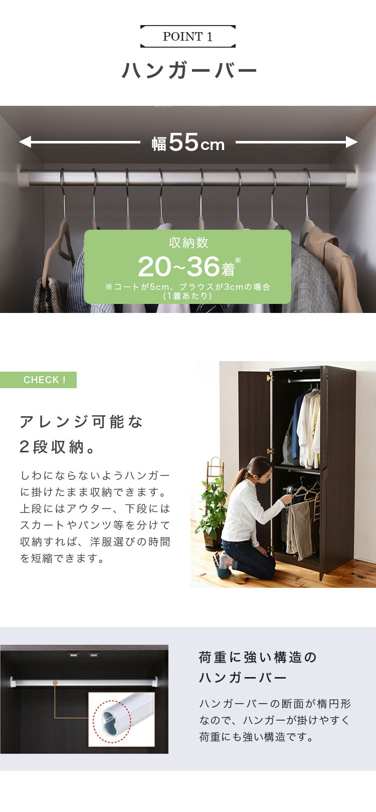 (上段ハンガーバー)幅54.5×高さ(可動棚最上段)68.5~(可動棚最下段)97.5cm