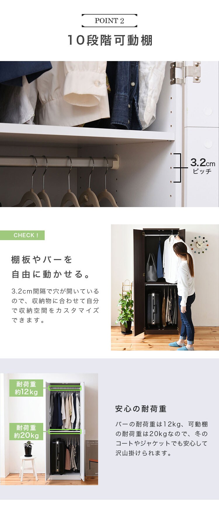 (下段ハンガーバー)幅54.5×高さ(可動棚最上段)80~(可動棚最下段)54.5cm(3.2cmピッチ10穴)