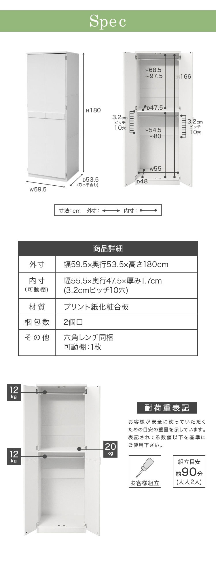 [内寸]:(扉内)幅55×奥行48×高さ166cm