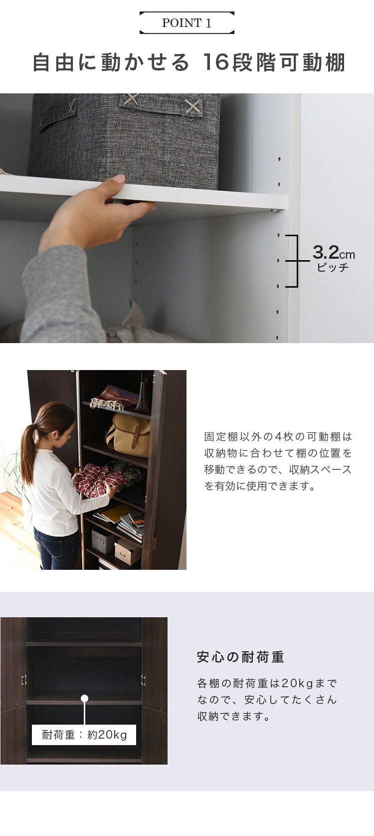 [固定棚/可動棚]約20kg以下
