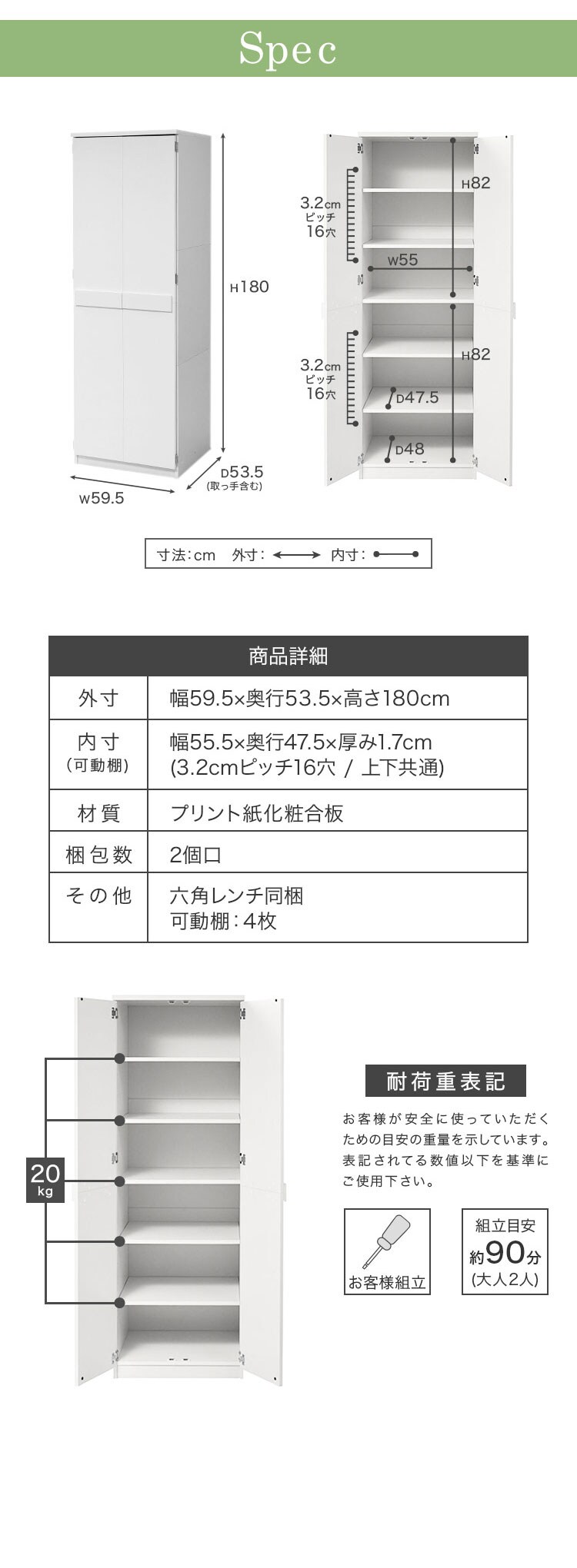 幅59.5×奥行53.5×高さ180cm