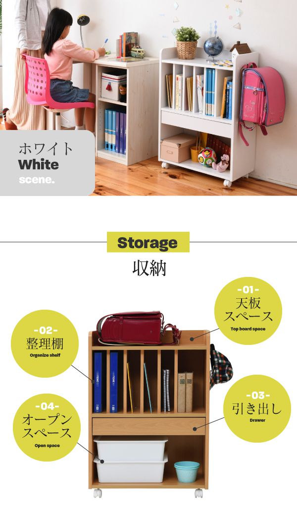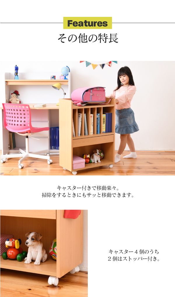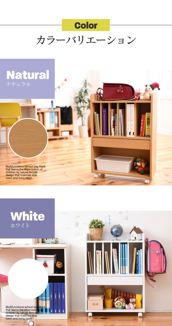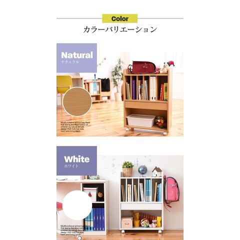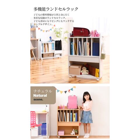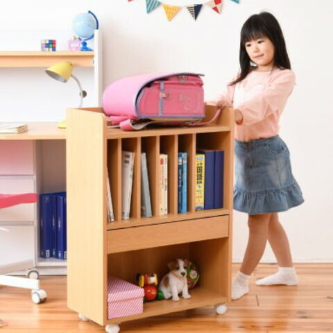 ランドセルラック 多機能 幅60 高さ85 奥行30 ランドセル 収納 子供部屋 キャスター付き 木製 本棚 子供 スリム ナチュラル【送料無料】