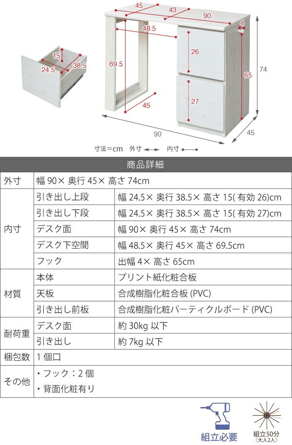 育てる デスク コンパクト デスク チェスト セット 買い足し 可能 机 収納 大人の勉強机 木製 省スペース 幅90 ナチュラル【送料無料】