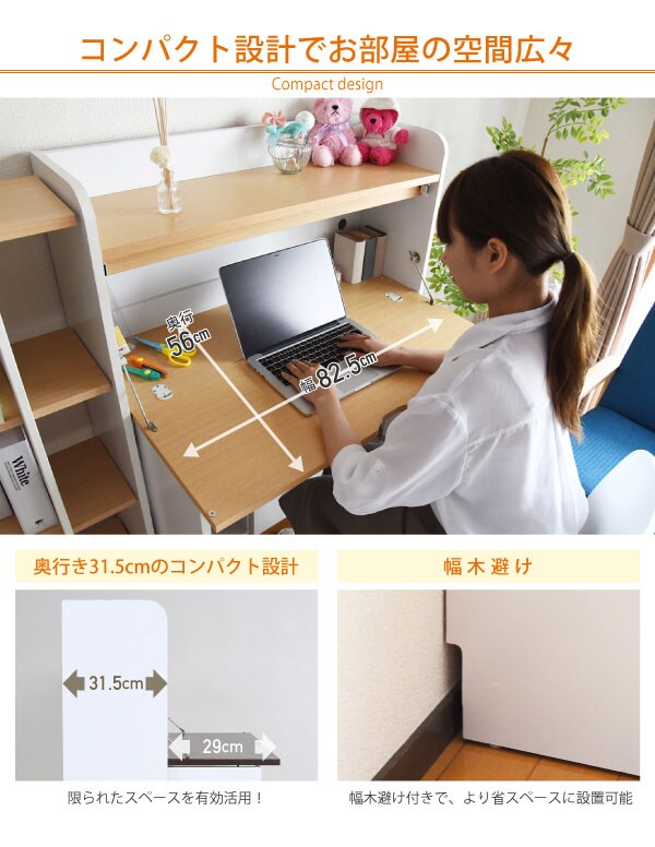 (デスク作業面)幅82.5×奥行56.0×高さ27cm
