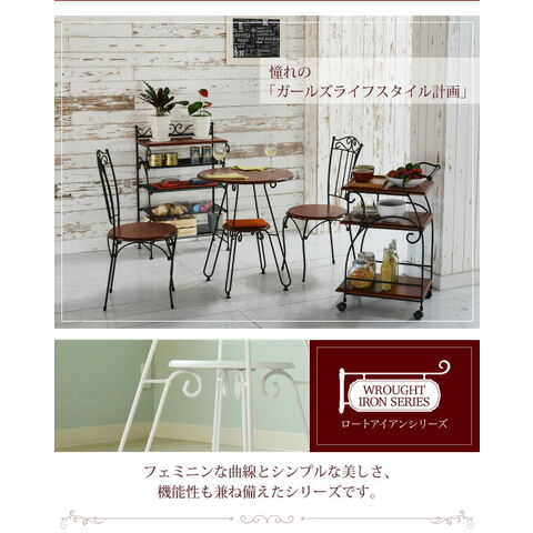 ヨーロッパ風 ロートアイアン 家具 カフェテーブル 丸 テーブル 幅60cm 高さ70 棚付き ブラック【送料無料】