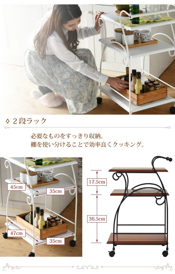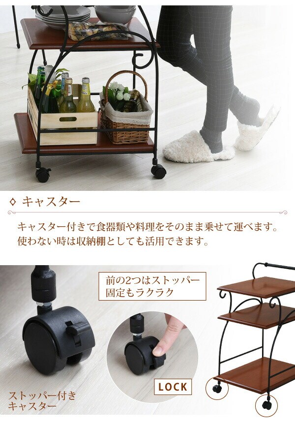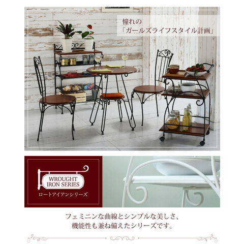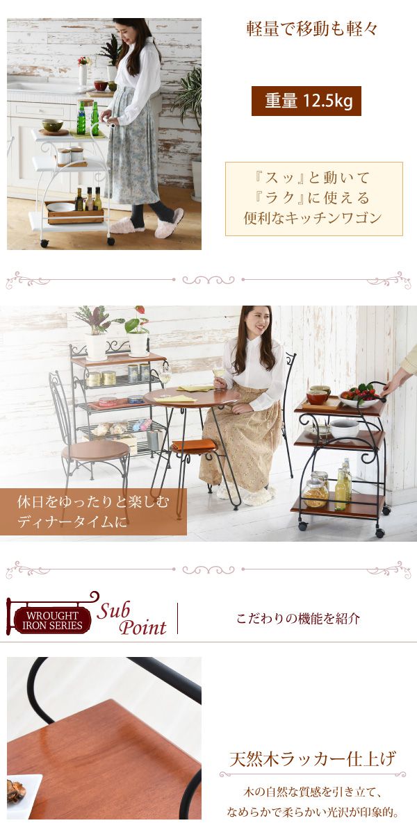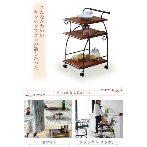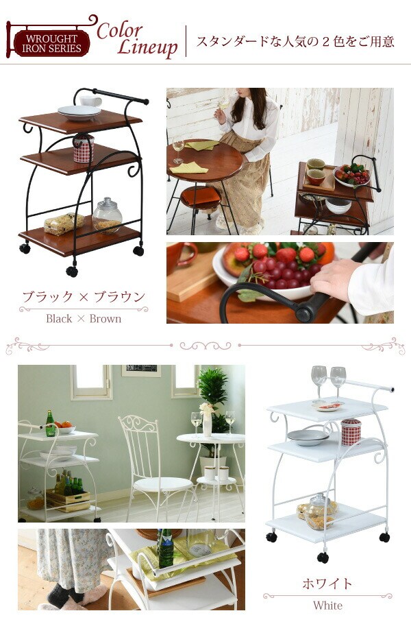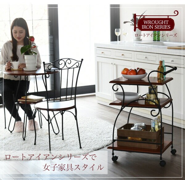 ヨーロッパ風 ロートアイアン 家具 キッチンワゴン キャスター 付き スリム 幅41.5 木製 天板 高さ 80 ブラック【送料無料】