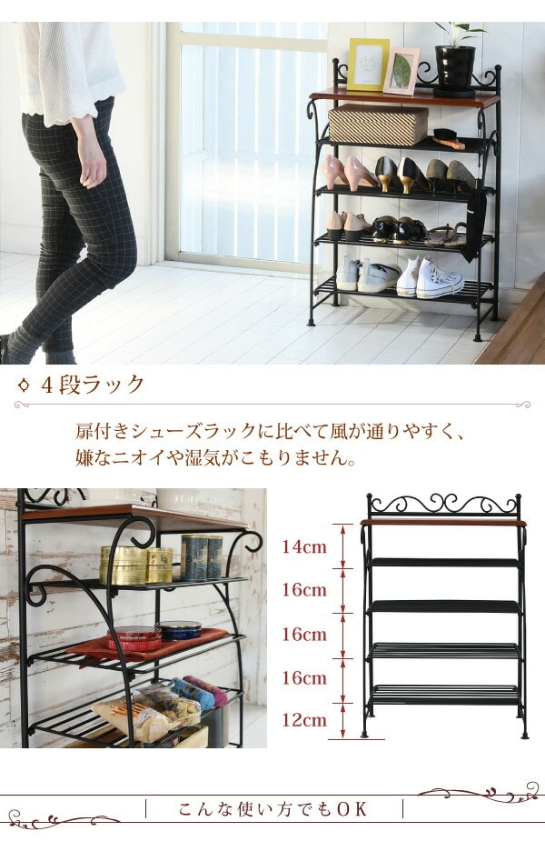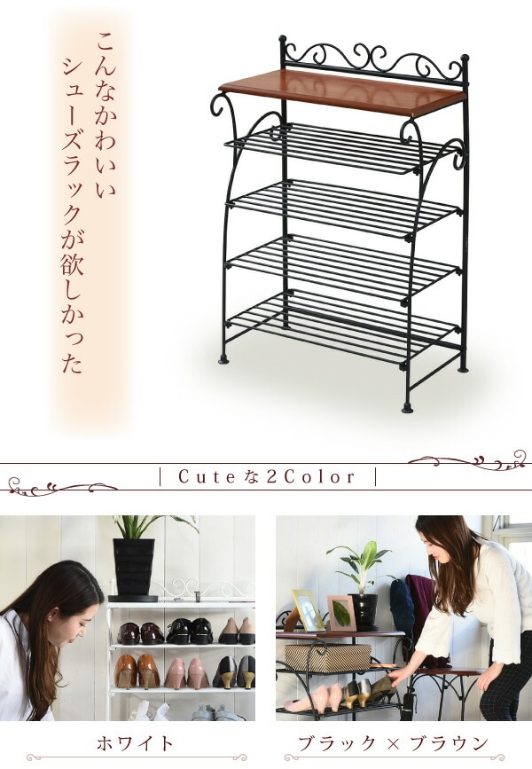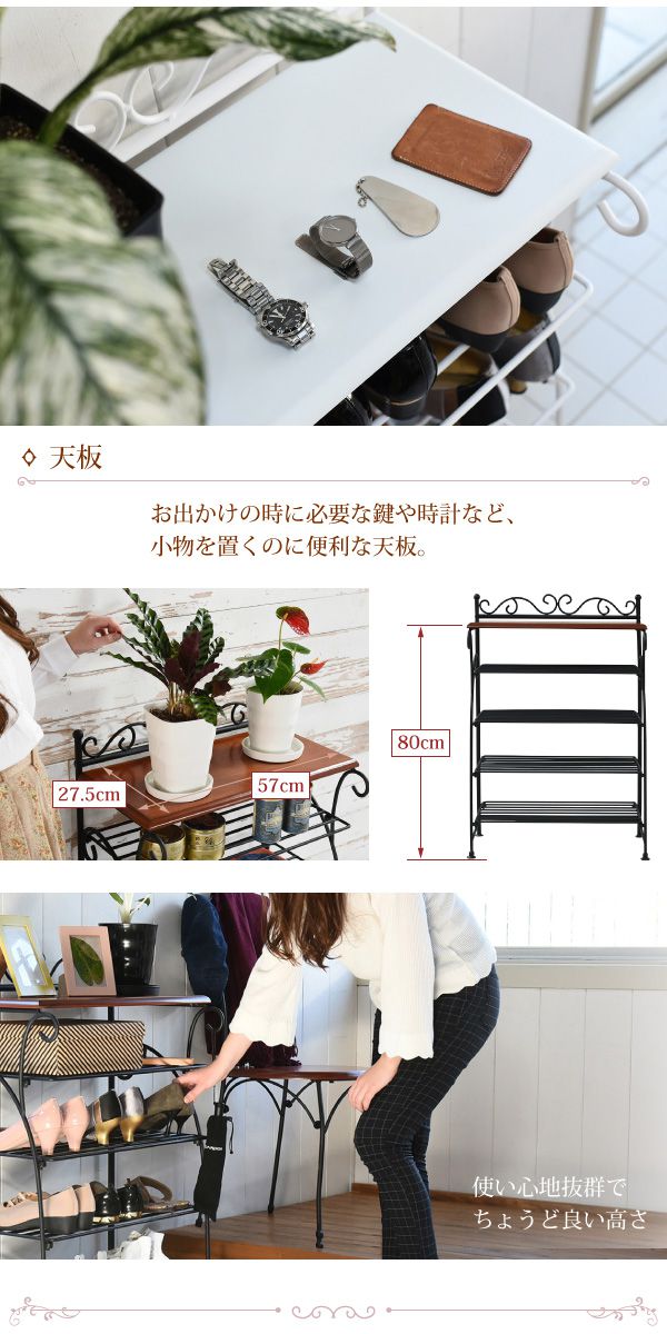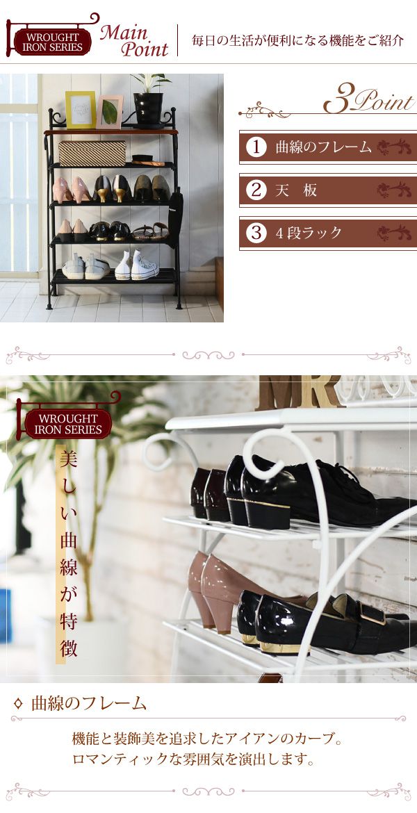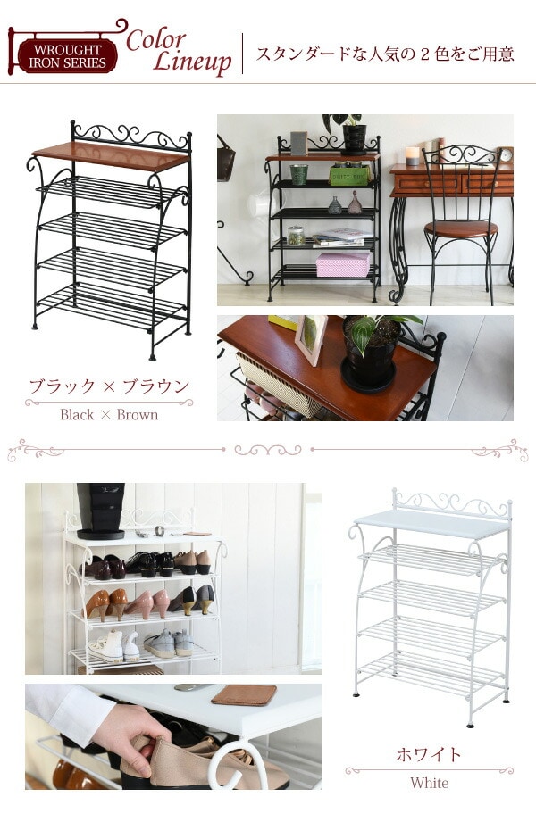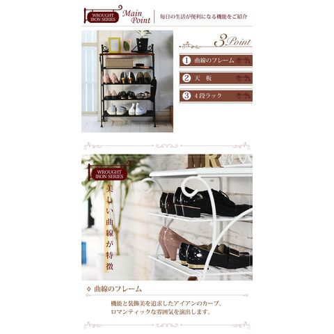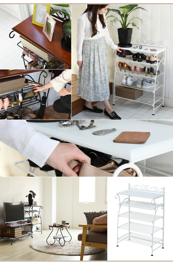 ヨーロッパ風 ロートアイアン 家具 靴箱 兼 飾り棚 幅61.5 シューズボックス 下駄箱 シューズラック 靴 収納 ホワイト【送料無料】