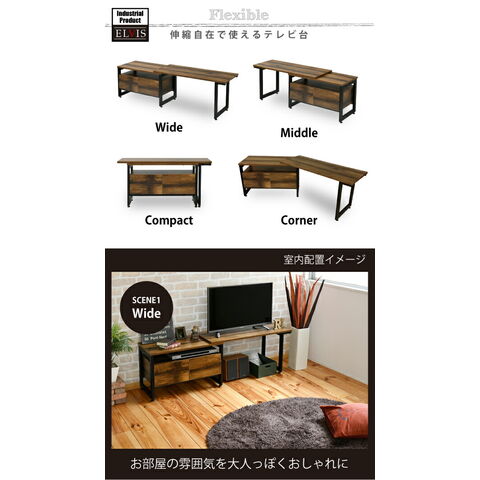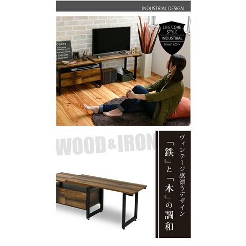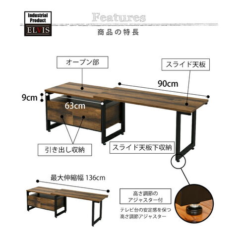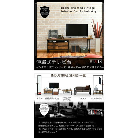 インダストリアル ローボード テレビ台 伸縮 幅90 - 136 奥行35 高さ46 引き出し 付き 収納 左右入れ替え可能32型 40インチ【送料無料】