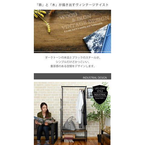 インダストリアル ハンガーラック 幅76 奥行46 高さ160 ダブル ハンガー 棚 付き 衣類収納 洋服収納 服 西海岸 ヴィンテージ【送料無料】
