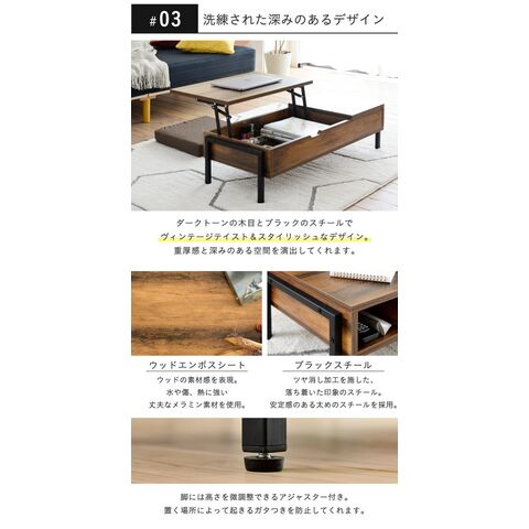 一人暮らし、収納、お洒落、油圧式、センターテーブル、ローテーブル、ビンテージ、アンティーク、黒、作業台、昇降、昇降式、鉄脚、木製、木製テーブル、油圧、リビング、ブラウン、パソコン、ヴィンテージ、ウッド、エクステンション、木、ラック、木目調、木目、在宅、テレワーク、ダークブラウン、pc、40cm、脚、収納付き、ブラック