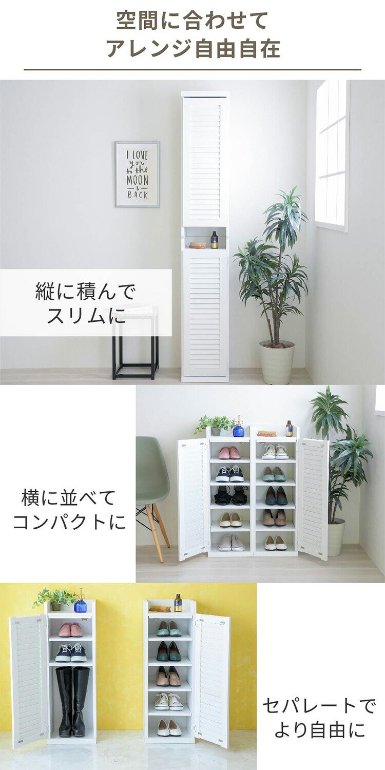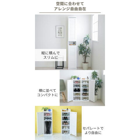 ルーバーシューズボックスの幅違いシリーズ。2個セットなのでお好みに合わせて横に並べても縦に積んでもお使いいただけます。設置場所に合わせて扉の開け方も左右選ぶことが可能です。お部屋に合わせて色やサイズ、使い方が選べる便利なシューズラック。