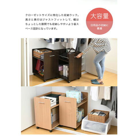 クローゼット 収納 ラック 2個セット 幅38 奥行58 キャスター付き ワゴン 整理 隙間 家具 大容量 ナチュラル【送料無料】