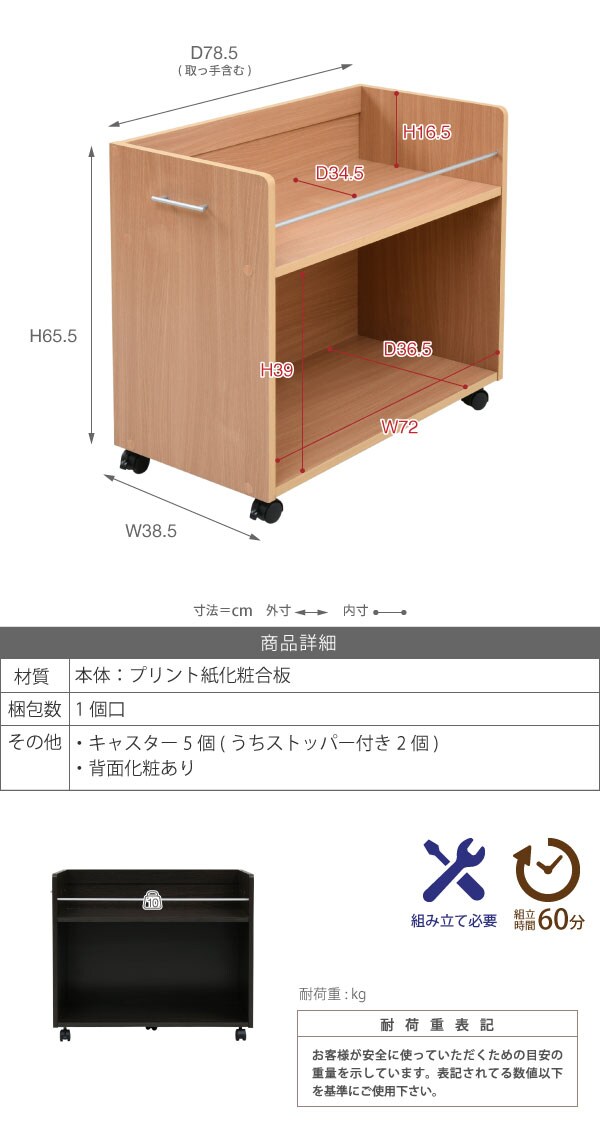 押入れ 収納 ラック 2個セット 幅38 奥行78 キャスター付き ワゴン 整理 隙間 家具 押入れ 収納 リビング 大容量 ブラウン【送料無料】