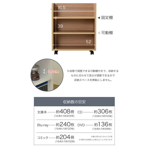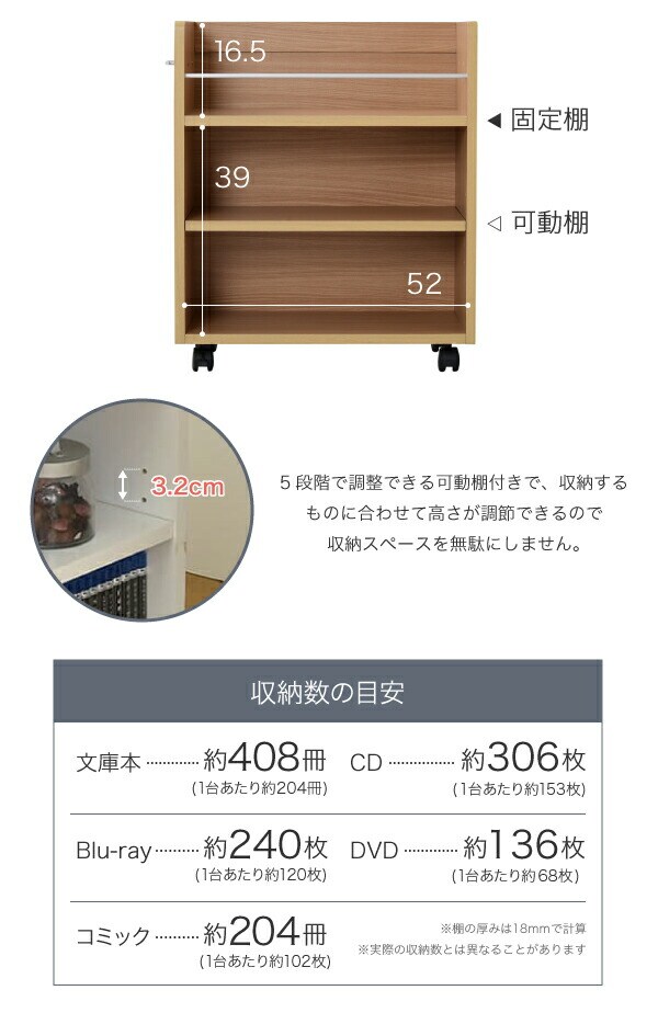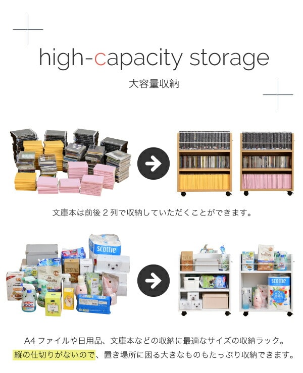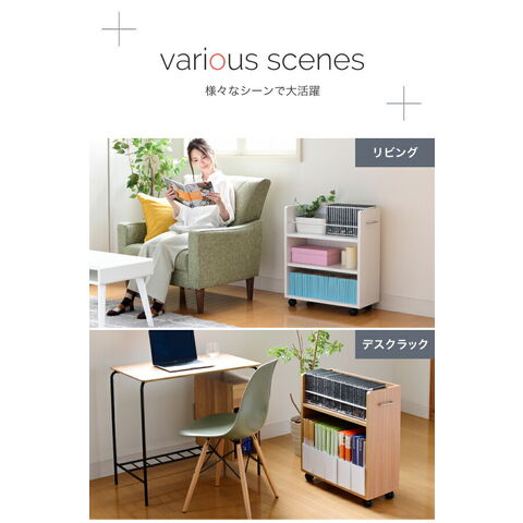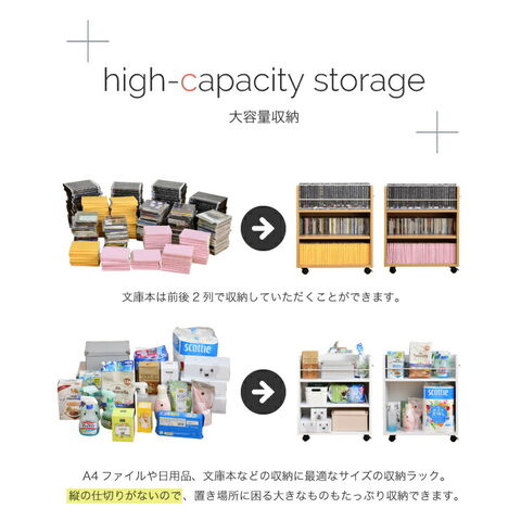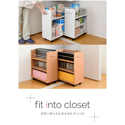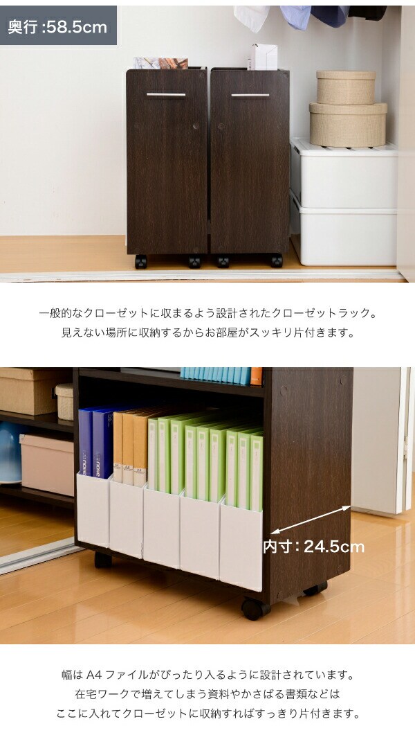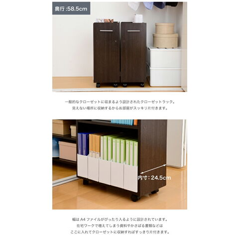 クローゼットにぴったり入る、キャスター付きラック2個組。クローゼット内のスペースを有効活用して、A4ファイルやメディア、日用品を収納できます!