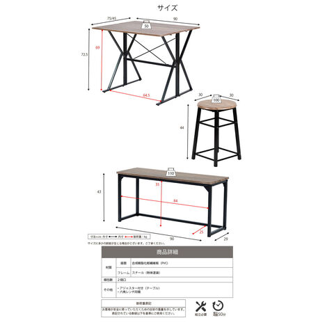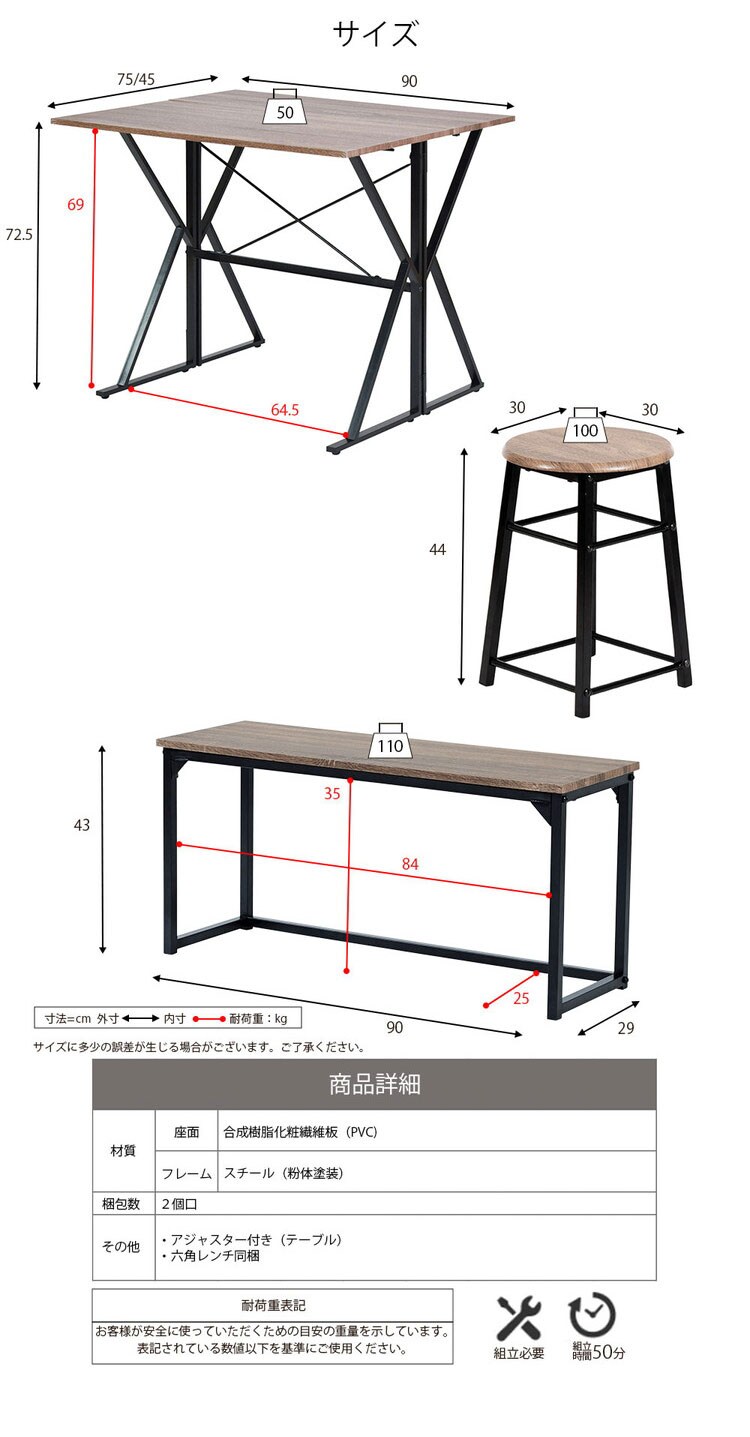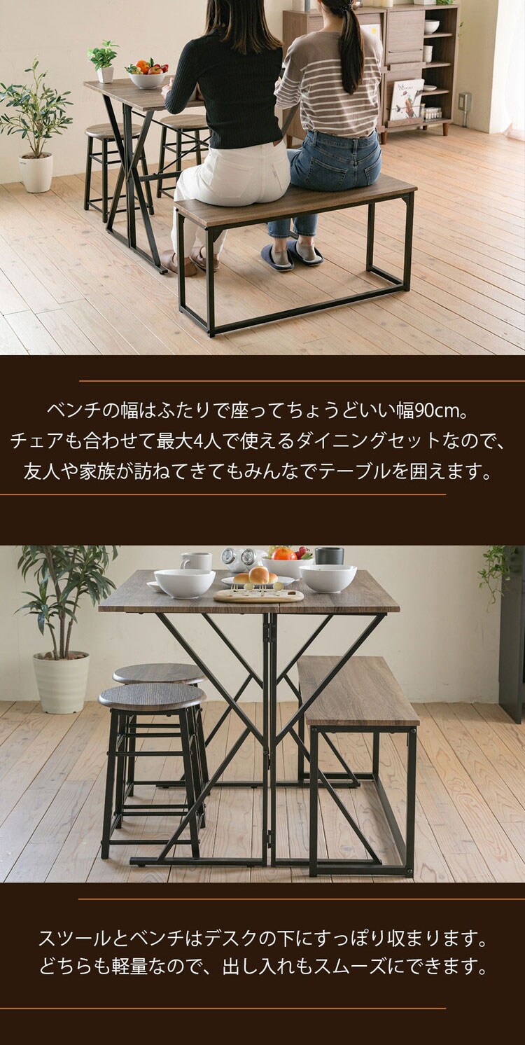変形ダイニング4点セット 組み替え自由 ダイニングセット 4点セット ダイニング カウンター デスク 幅90 スツール ベンチチェア ダイニングベンチ ヴィンテージ調 おしゃれ【送料無料】