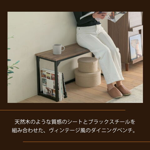 ダイニングやエントランスのベンチなどに使え、ディスプレイ台としても使える優れもの。座面下にはオープンスペースがあるのでラック下収納部としても使えます。座面はPVCなので傷や水分に強く、小さな花瓶などのディスプレイにも◎