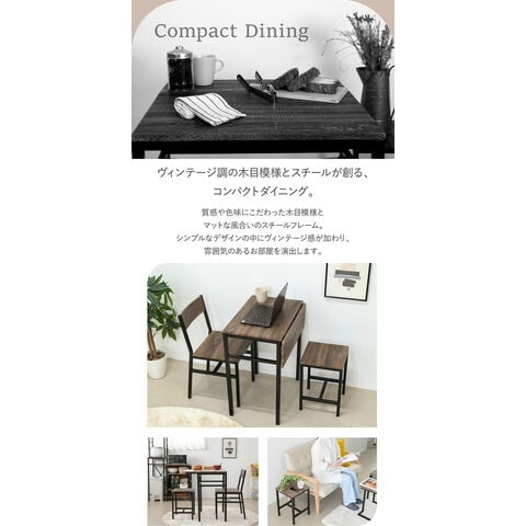 一人暮らしにぴったりなテーブルとチェア、スツールの3点が揃ったダイニングテーブルセット。一人使いはもちろん、来客があった時にも対応することができるので便利。バタフライ天板なのでシーンに合わせてデスク使いすることもできます。