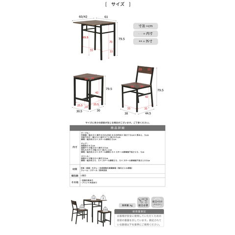 (テーブル)幅61×奥行42/60×高さ70.5cm