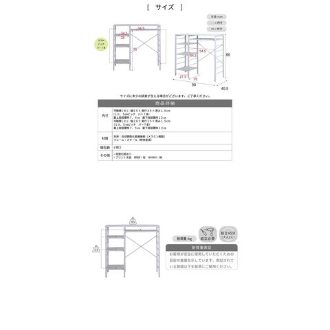 (可動棚大)幅55×奥行35×厚み1.5cm(10.5cmピッチ7段階)