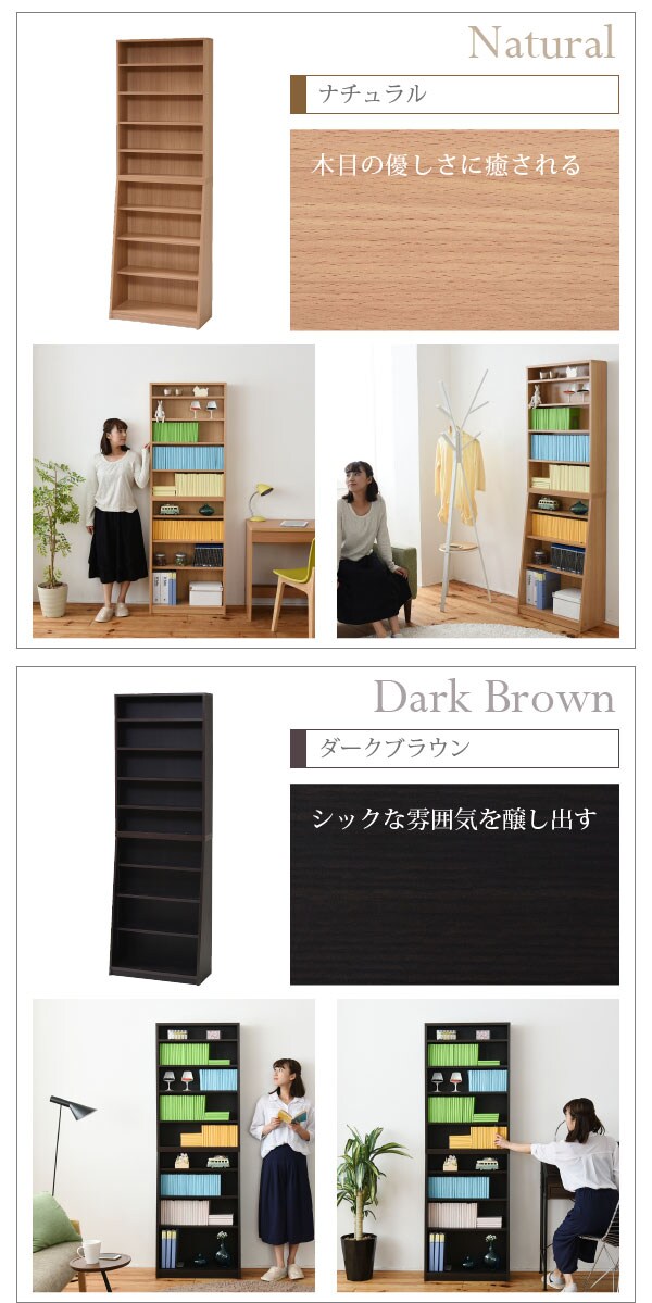 1cmピッチ 薄型 大容量 文庫本ラック 幅60 本棚 リビング収納 木製 収納家具 本収納 コミック CD DVD ダークブラウン【送料無料】