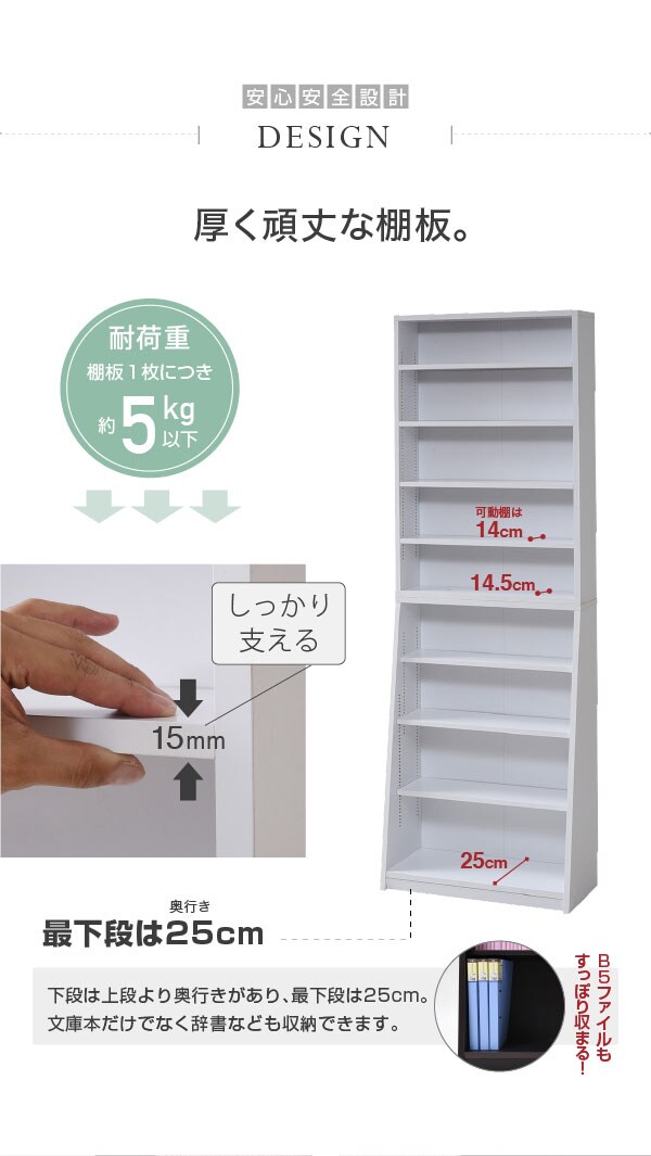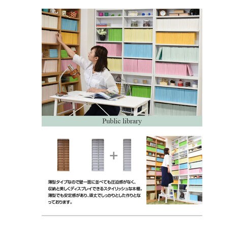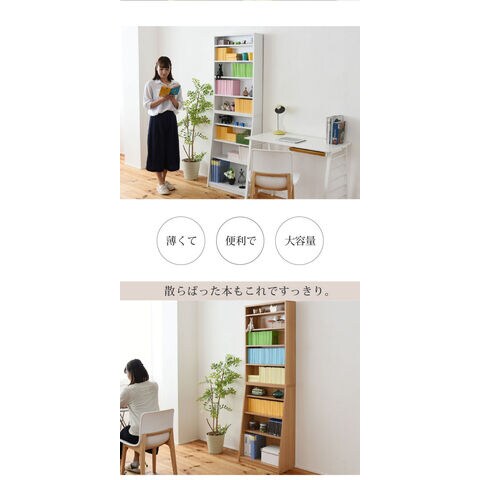 1cmピッチ 薄型 大容量 文庫本ラック 幅60 本棚 リビング収納 木製 収納家具 本収納 コミック CD DVD ホワイト【送料無料】