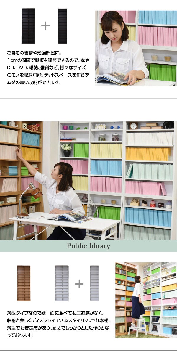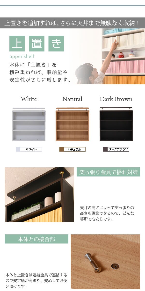 [収納量](文庫本)約111冊、(コミック)約74冊、(DVD)約74枚、(CD)約168枚、(Blu-ray)約86枚