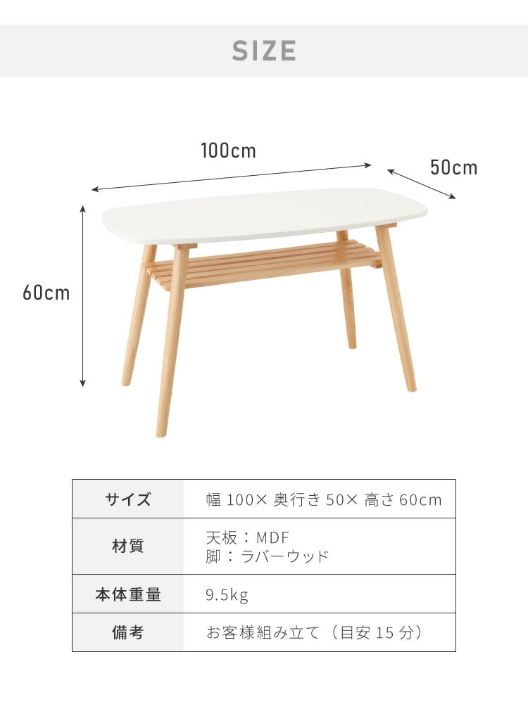 センターテーブル 高さ60cm ハイタイプ 棚付き おしゃれ 北欧 シンプル ナチュラル テーブル ハイテーブル 机 収納付き 天然木 一人暮らし 新生活 リビング ダイニング 食事 作業【送料無料】