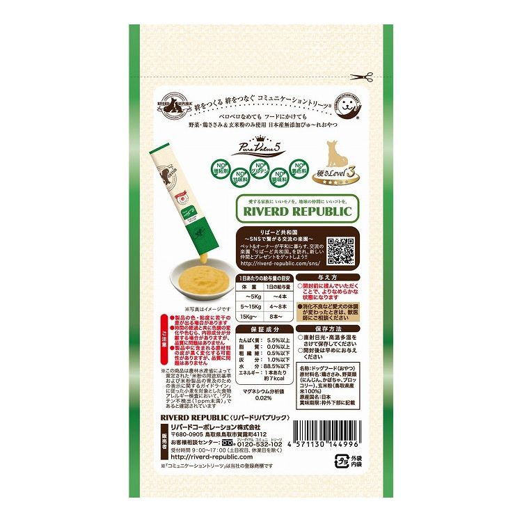 【6個セット】 リバード いぬぴゅーれ 無添加 PureValue5 緑黄色野菜 4本 犬用 犬 ウェット ウェットフード【ポイント10倍】 【送料無料】