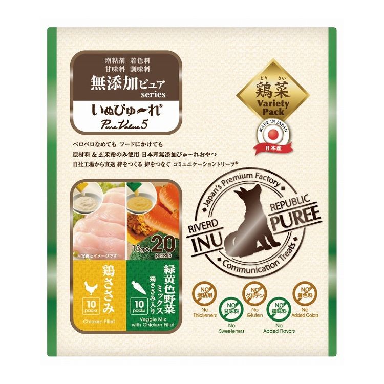 【6個セット】 リバード いぬぴゅーれ 無添加 PureValue5 鶏ささみ 野菜ミックス 20本 犬用 犬 ウェット ウェットフード【ポイント10倍】 【送料無料】
