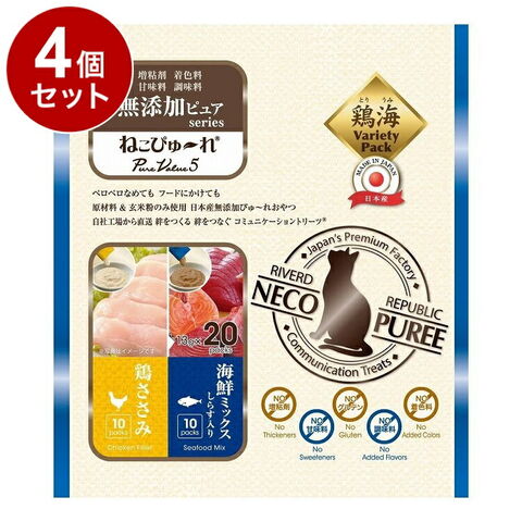 【4個セット】 リバード ねこぴゅーれ 無添加 PureValue5 鶏ささみ 海鮮 20本 猫用 猫 ウェット ウェットフード【ポイント10倍】 【送料無料】
