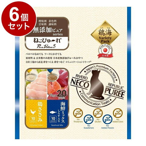 【6個セット】 リバード ねこぴゅーれ 無添加 PureValue5 鶏ささみ 海鮮 20本 猫用 猫 ウェット ウェットフード【ポイント10倍】 【送料無料】