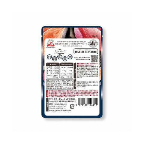 魚介類(まぐろ、サーモン、かつお)、グリーンバナナスターチ、かつおだし、焼き牡蠣粉末、焼き椎茸粉末、寒天、キトサンオリゴ糖、乳酸菌生産物質粉末、秋ウコン粉末