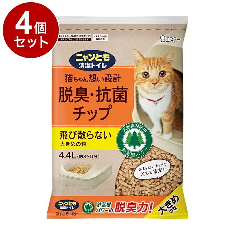 【4個セット】 エステー ニャンとも清潔トイレ 脱臭抗菌チップ 大きめの粒 4.4L 猫砂 猫トイレ 猫用トイレ システムトイレ用 ニャンとも にゃんとも【ポイント10倍】 【送料無料】