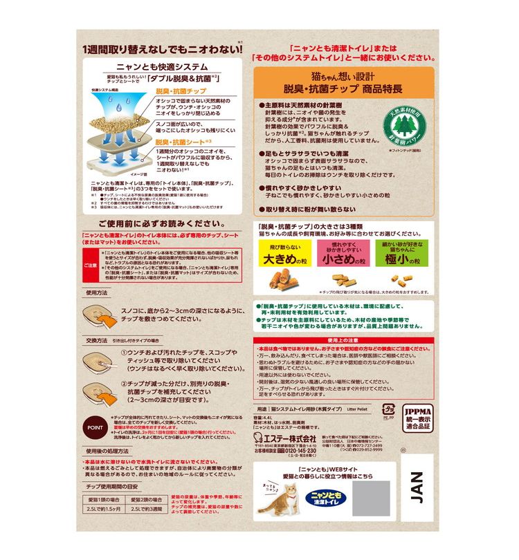 猫ちゃんが触れるチップだから、人工香料、抗菌剤は使用していません。