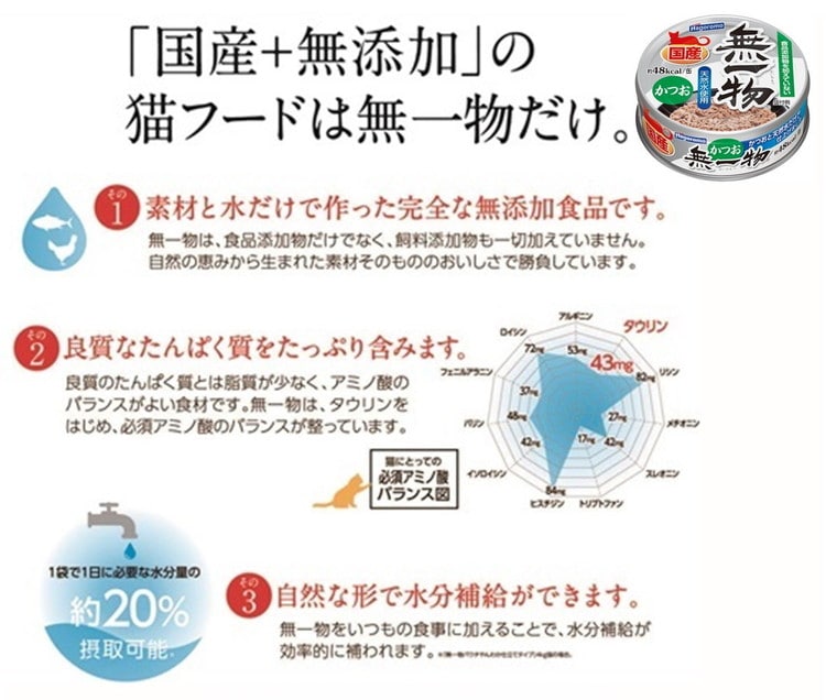 食品添加物を一切加えず、まぐろと天然水だけで仕上げた、水煮タイプの国産・無添加のキャットフードです。