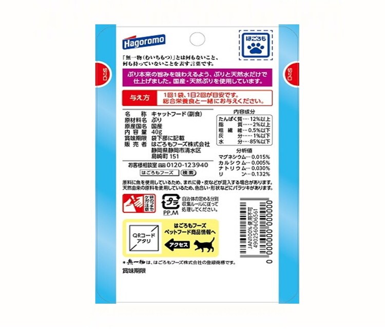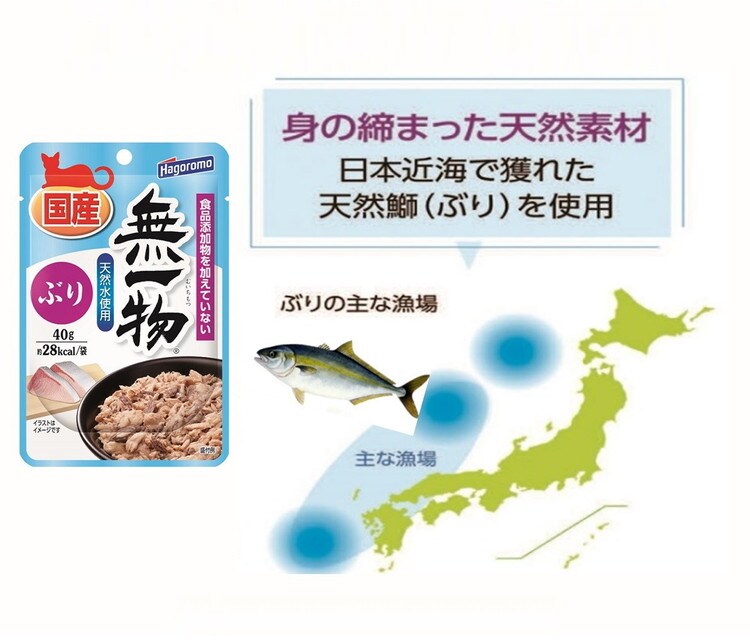 食品添加物を一切加えず、天然ぶりと天然水だけで仕上げた、水煮タイプの国産・無添加のキャットフードです。