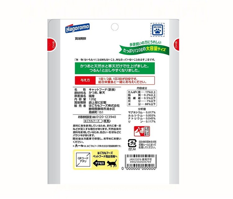 食品添加物を一切加えず、かつおと天然水と寒天でゼリータイプに仕上げた、国産・無添加のキャットフードです。つるっと取り出しやすいタイプです。多頭飼い向けの大容量サイズです。