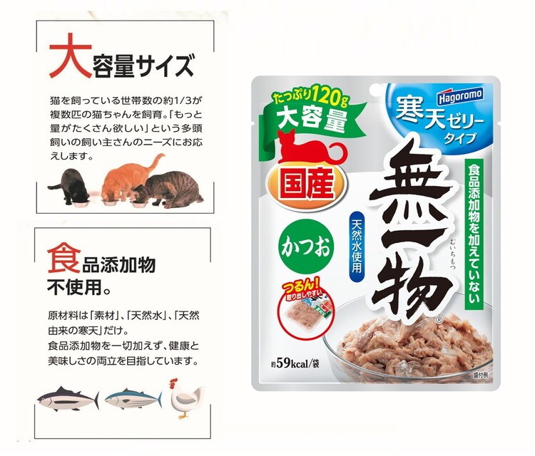 多頭飼い向け大容量タイプ。食品添加物を一切使用せずに仕上げた国産・無添加のキャットフード