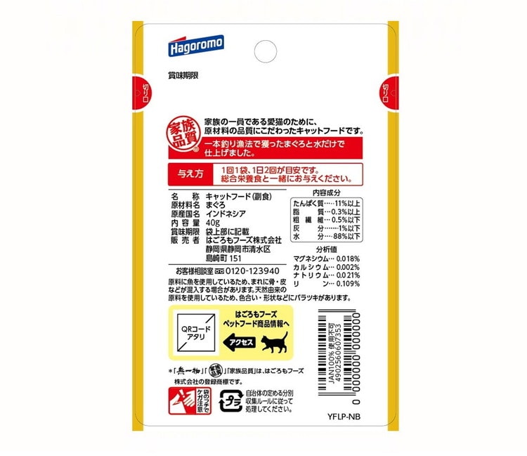 一本釣り漁法で獲ったまぐろと水だけで仕上げた水煮タイプの無添加キャットフードです、食品と同じ原料を使用して仕上げた家族品質です。