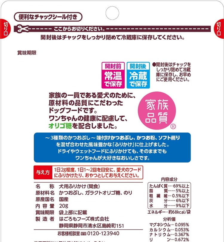 わんちゃん用のふりかけです。風味豊かな3種類のかつお節で、わんちゃんが大好きな美味しさです。