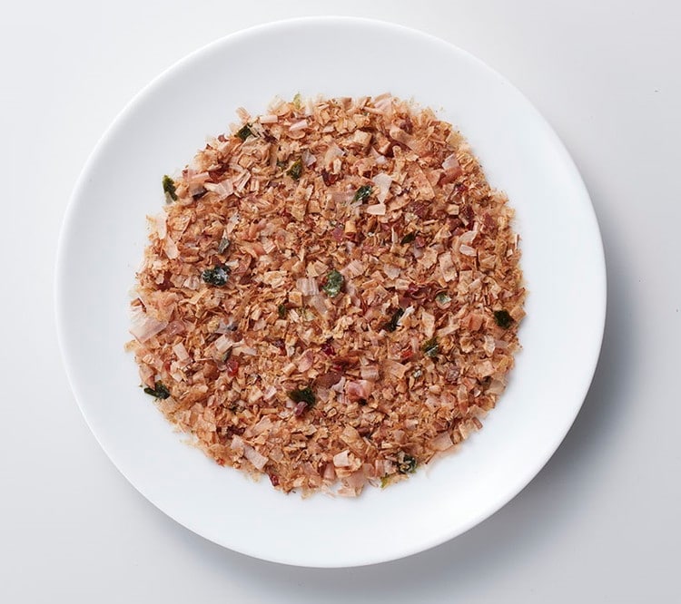 味かつお、かつお粉、ソフト削りのトリプルかつお節で食感、味、風味を整えました。