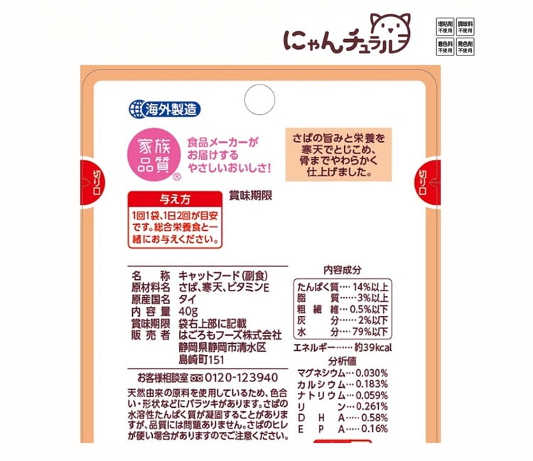 【24個セット】 はごろもフーズ にゃんチュラルパウチ さばの煮こごり風 40g【ポイント10倍】 【送料無料】