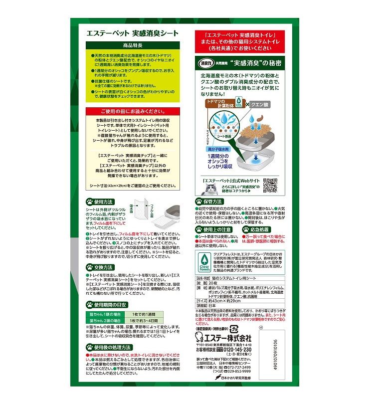 【2個セット】 エステーペット 実感消臭シート 猫用システムトイレ 20枚 システムトイレ用 猫シート 猫用シート 猫シーツ 猫トイレ 猫用トイレ【ポイント10倍】 【送料無料】