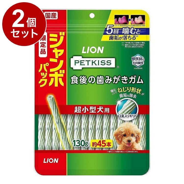 【2個セット】 ライオンペット PETKISS 食後の歯みがきガム 超小型犬用 ジャンボパック 135g【ポイント10倍】