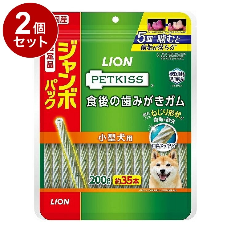 【2個セット】 ライオンペット PETKISS 食後の歯みがきガム 小型犬用 ジャンボパック 200g【ポイント10倍】