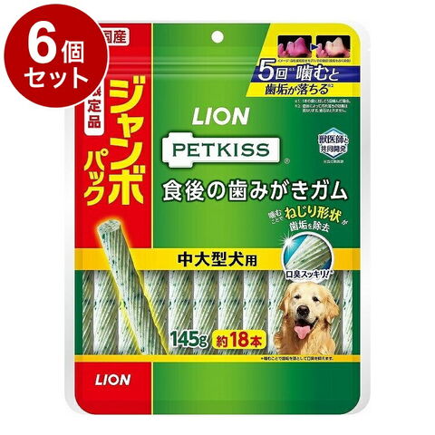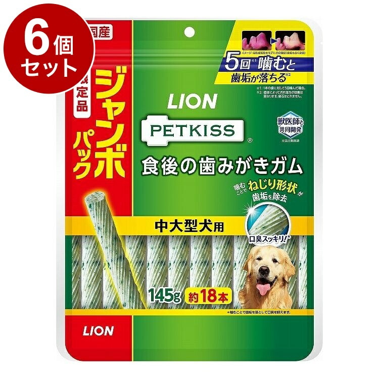【6個セット】 ライオンペット PETKISS 食後の歯みがきガム 中大型犬用 ジャンボパック 145g【ポイント10倍】 【送料無料】