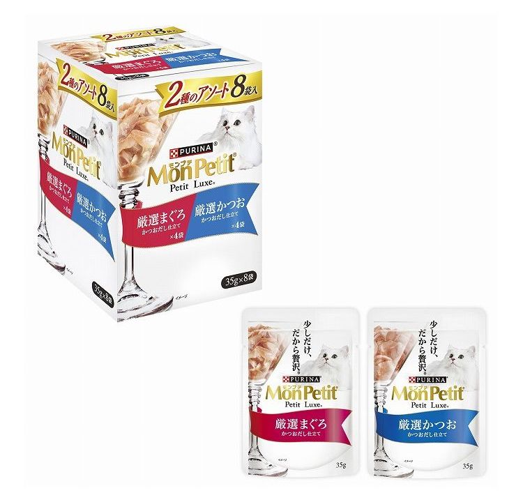 【4個セット】 ネスレ日本 モンプチ プチリュクスパウチ 2種鮪&かつお 35g×8P【ポイント10倍】 【送料無料】