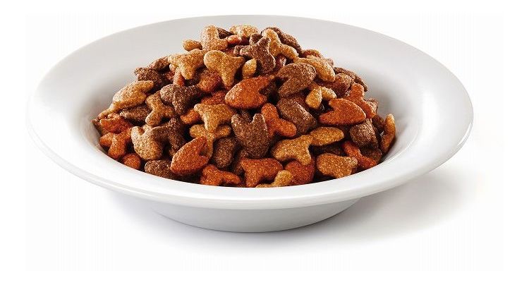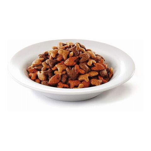 穀類(とうもろこし、とうもろこしたんぱく、小麦、米等)、肉類(チキンミール等)、動物性油脂、魚介類(まぐろ、かつお)、たんぱく加水分解物、フレーバーブレンド(かに、えび、鯛等)、ミネラル類(カルシウム、リン、カリウム、ナトリウム、クロライド、鉄、銅、マンガン、亜鉛、ヨウ素、セレン)、ビタミン類(A、E、K、B1、B2、パントテン酸、ナイアシン、B6、葉酸、ビオチン、B12、コリン)、アミノ酸類(メチオニン、タウリン)、着色料(カラメル色素、カロテノイド色素)